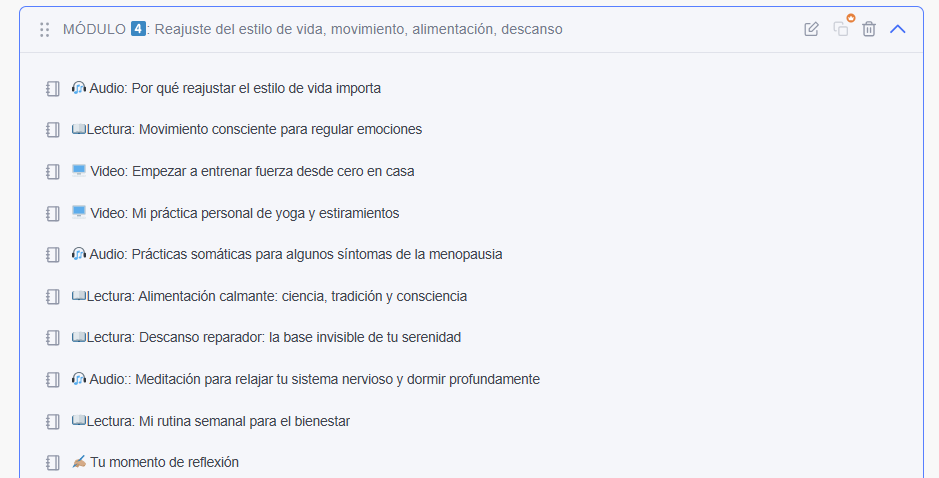 Querida, si decides comprometerte contigo misma estas 4 semanas y realizas las prácticas y ejercicios propuestos, este programa te va a ofrecer un reset, dar mucha luz y la capacidad de gestionar tus estados emocionales con mayor facilidad.